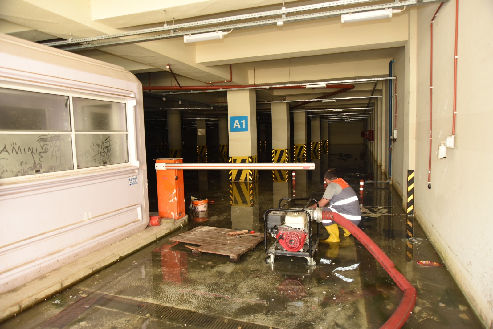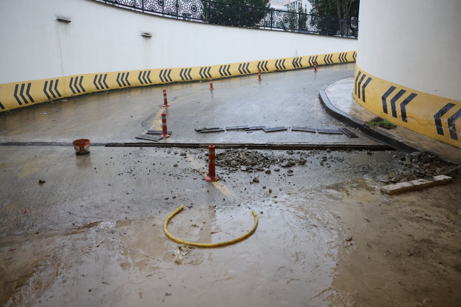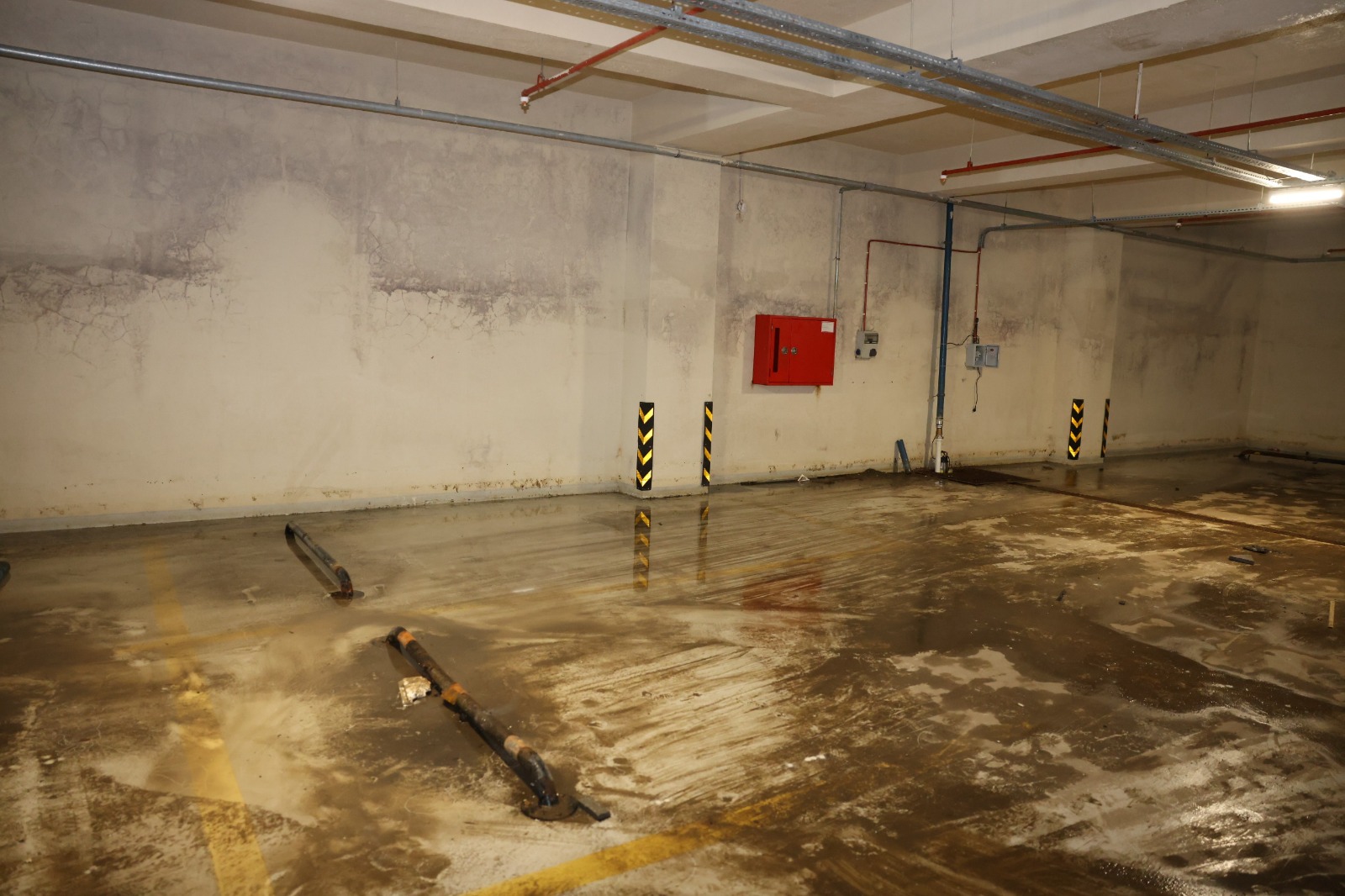 Öte yandan Başkan Tepe’nin incelemeleri sırasında otoparkta geçmiş yıllarda yaşanan su baskınlarının boyutunu gözler önüne seren çarpıcı detaylar dikkat çekti. Otopark içerisine dolan suyun yaklaşık 2,5 metre yüksekliğe kadar ulaştığı, bu durumun duvarlarda belirgin izler bıraktığı gözlemlendi.