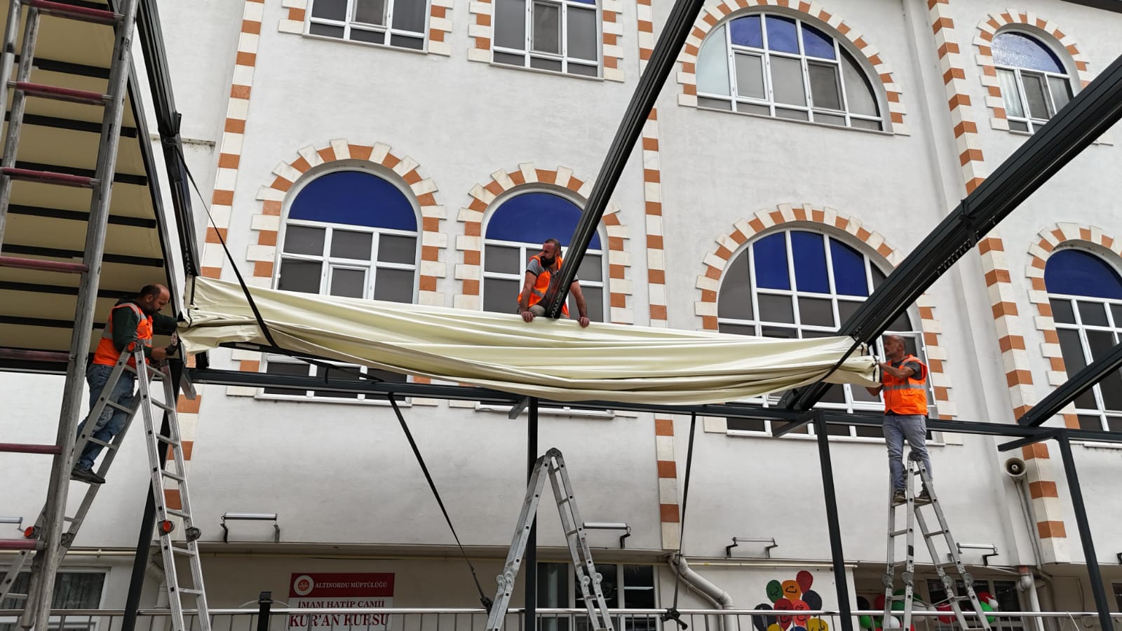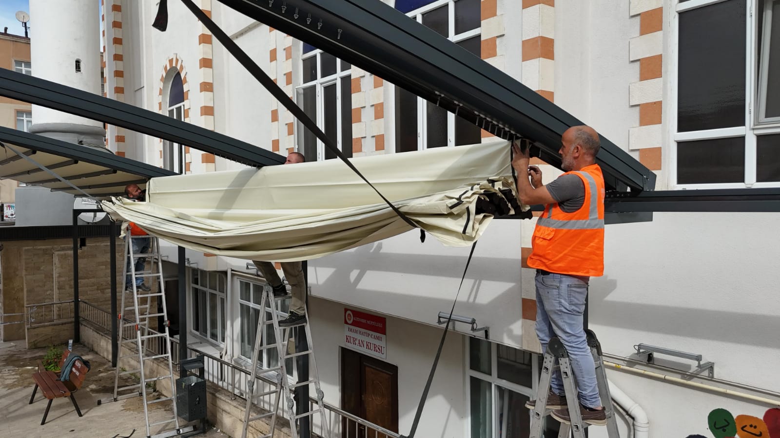 ALTINORDU BELEDİYESİ İMAM HATİP CAMİİ’NE MODERN AÇILIR KAPANIR TENTE SİSTEMİ KURDU