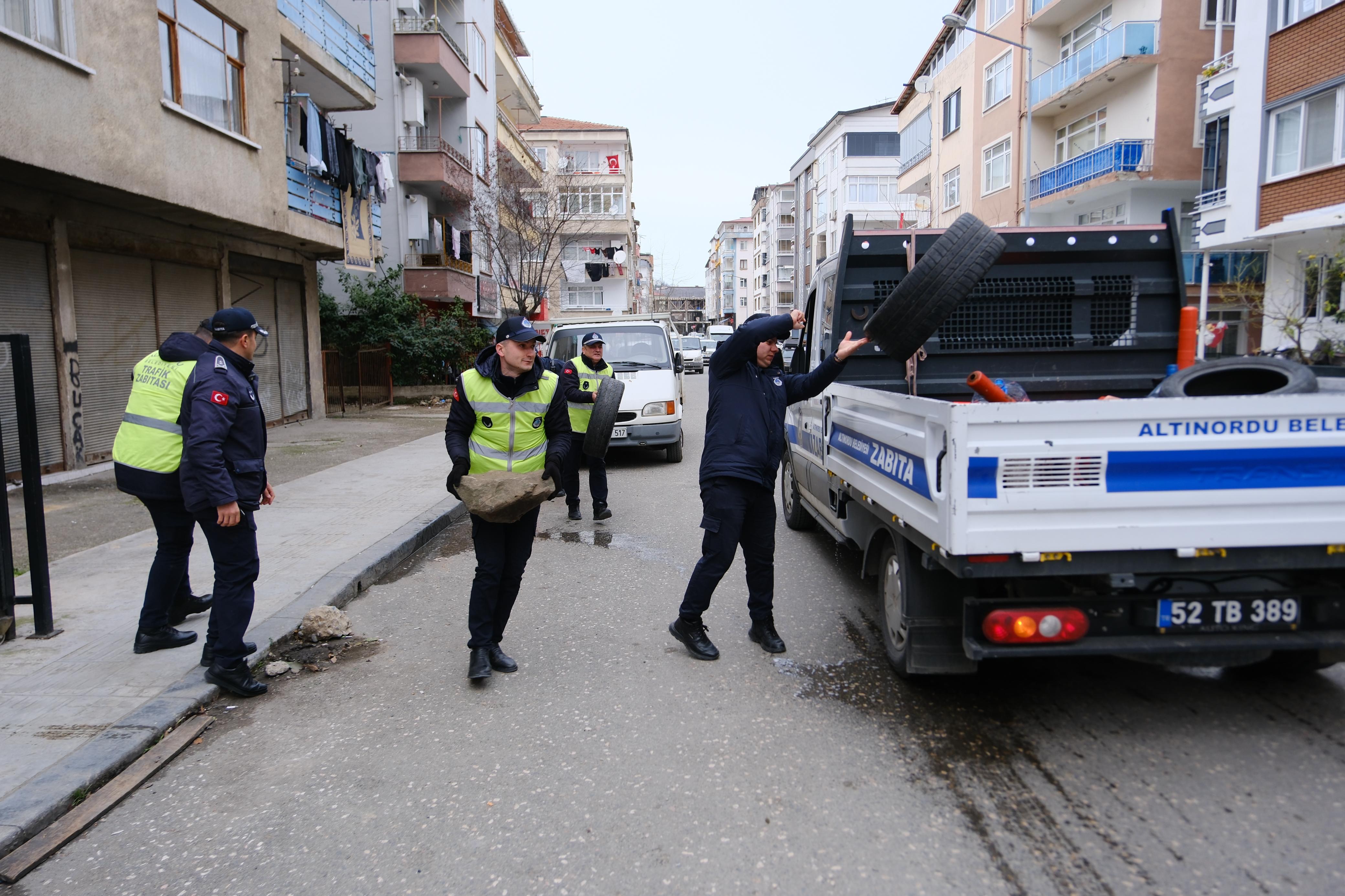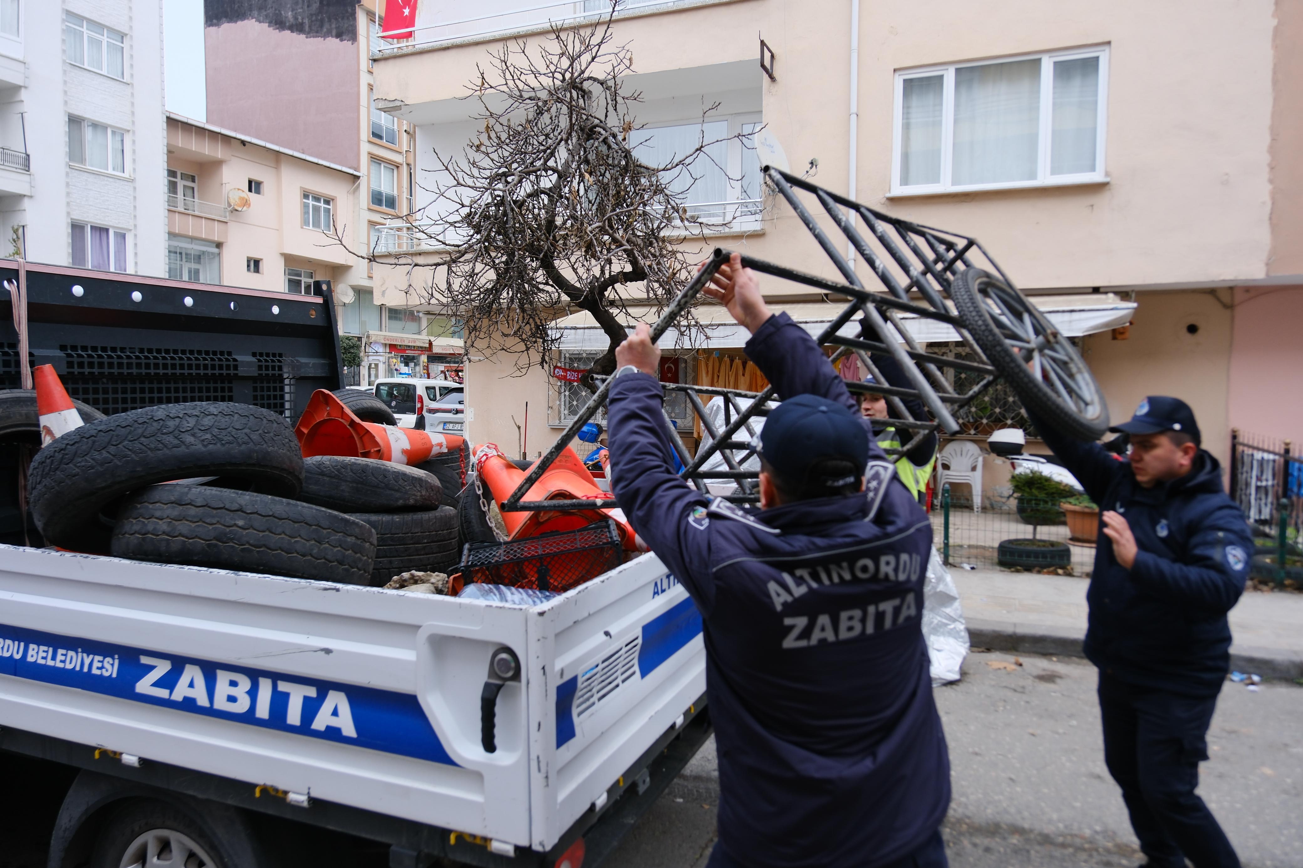 Altınordu Belediyesi Zabıta Müdürlüğü, kent genelinde yayaların güvenli geçişini sağlamak amacıyla kaldırım işgallerine yönelik denetimlerine Bucak ve Subaşı Mahallesi'nde devam etti. Denetimler boyunca zabıta ekipleri işletmeleri işgallere karşı uyarırken, işgale neden olan materyaller toplandı.