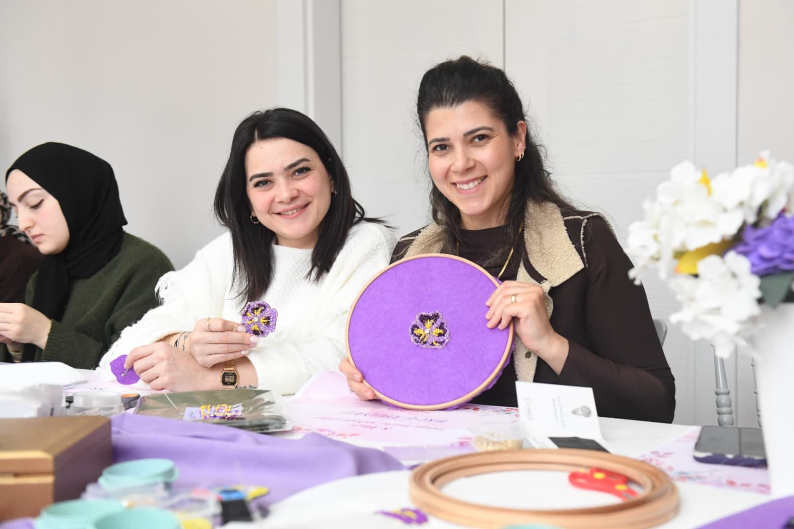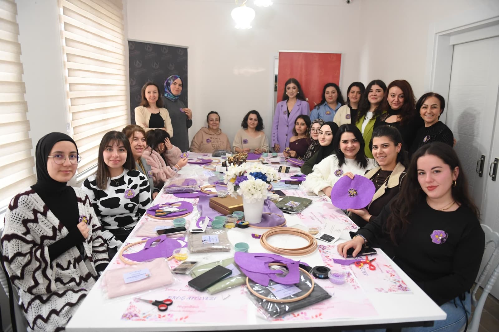 Kadınlar Günü etkinlikleri çerçevesinde Aziziye Kadın Girişimci Merkezi’nde ise 8 Mart temalı broş yapımı etkinliği gerçekleştirildi. Kadınların el emeğiyle hazırladığı broşlar, üretmenin mutluluğunu bir araya getirdi. Keyifli bir atmosferde geçen etkinlikte kadınlar hem yeni beceriler kazandı hem de birlikte üretmenin mutluluğunu yaşadı.