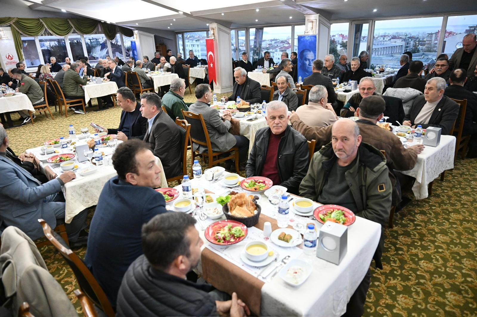Altınordu Belediye Başkanı Ulaş Tepe, Ramazan ayının manevi atmosferinde mahalle muhtarlarıyla iftar sofrasında bir araya geldi. TESK Otel’de düzenlenen ve yoğun katılımın olduğu programda birlik, beraberlik ve dayanışma mesajları öne çıktı. Altınordu’nun farklı mahallelerinden muhtarların katıldığı iftar programında samimi bir ortam oluşurken, Başkan Ulaş Tepe muhtarlarla tek tek sohbet ederek mahallelerin ihtiyaçları ve yürütülen çalışmalar hakkında görüş alışverişinde bulundu.