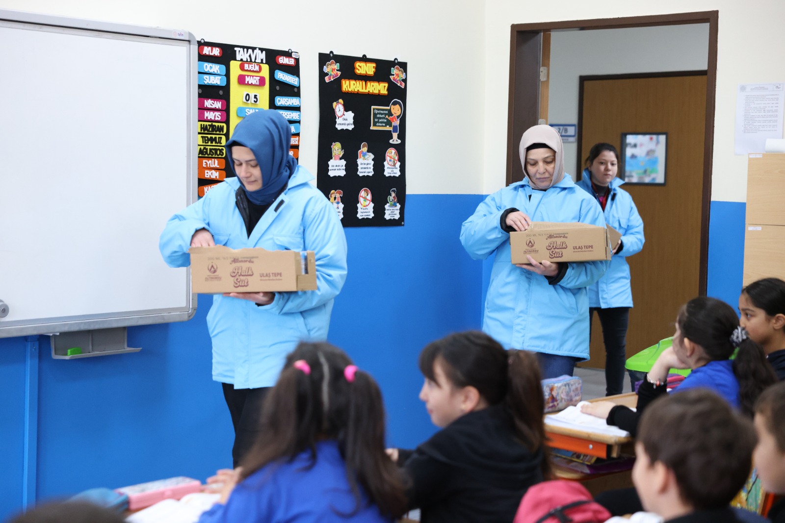 Başkan Ulaş Tepe, bu yıl süt dağıtımı yapılan öğrenci sayısını iki katına yükselttiklerini belirterek, “Bizim en büyük gurur kaynaklarımızdan biri olan uygulamalarımızın başında Halk Süt geliyor. Yapılan araştırmalar, her 3 çocuktan 1’inin okula aç gittiğini ortaya koyuyor. Bu kapsamda geçtiğimiz yıl okul öncesi ve ilkokul çağındaki öğrenci kardeşlerimizin sıralarına her gün bir paket süt bırakmaya başlamıştık. Bu yıl çalışmamızı daha da genişleterek, okul sayısını 24’e, öğrenci sayısını ise 10 bine çıkardık. Okulların açılmasıyla birlikte yaklaşık 2,5 haftalık zaman diliminde 75 bin 603 paket sütü öğrencilerimize ulaştırdık. Altınordu’muzun çocuklarına afiyet olsun” dedi.