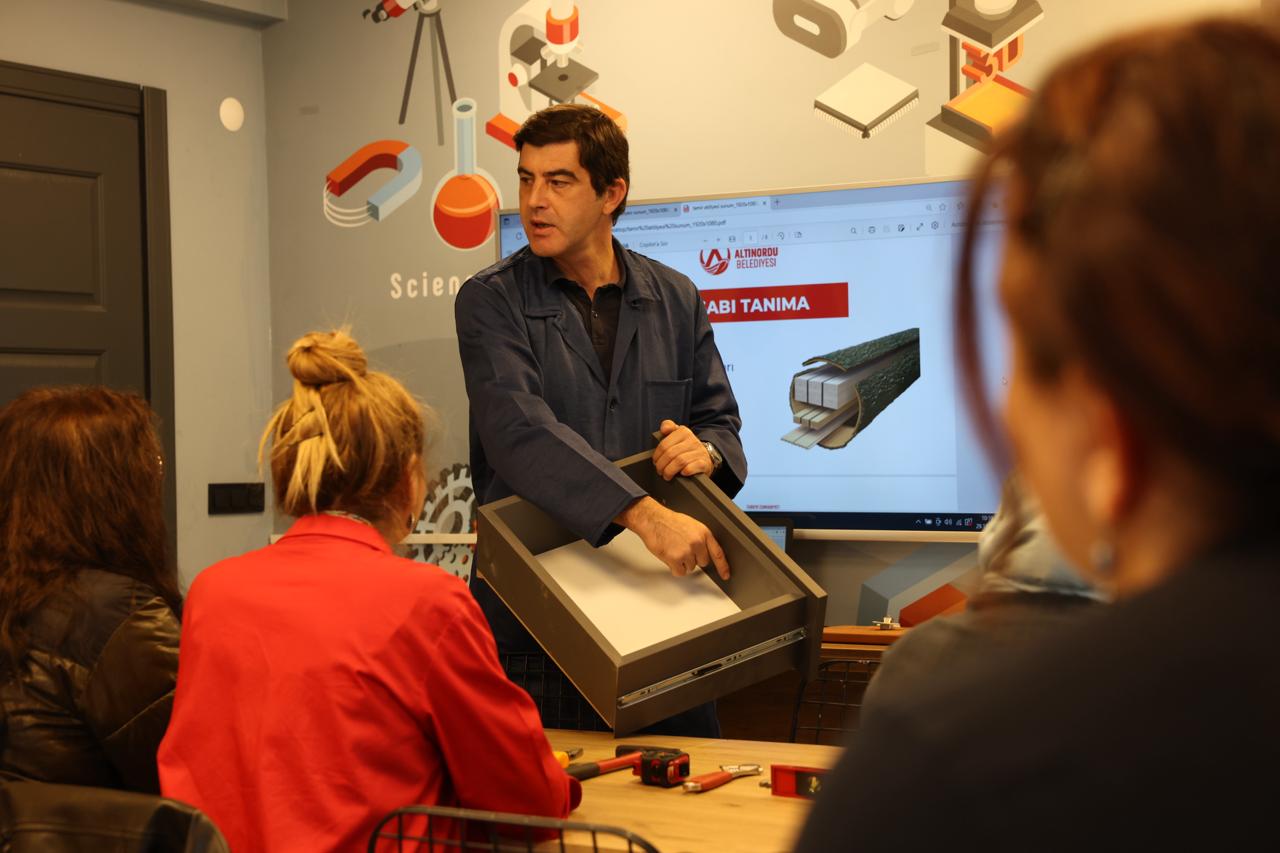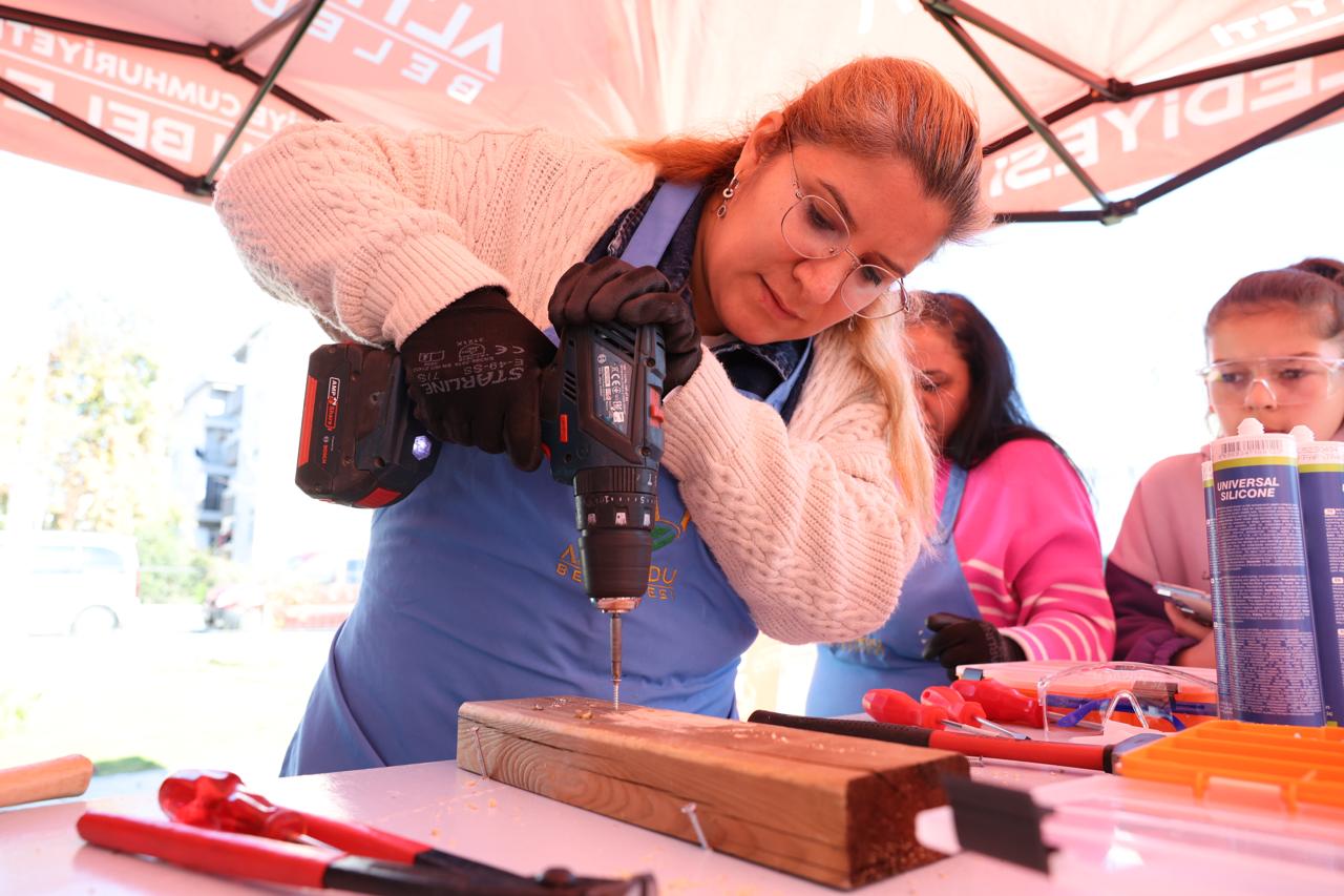 Altınordu Belediyesi, kadınların günlük yaşamda daha güçlü, daha bağımsız ve daha donanımlı olabilmesi için ilham veren bir eğitime daha imza attı. Bu kapsamda Altınordu Belediyesi, tüketimin hızla arttığı, tamir edilen eşyaların yerini çoğu zaman yenilerinin aldığı günümüzde, sürdürülebilirliği ve tasarrufu destekleyen ‘Küçük İşler Tamir Atölyesi’nin kapılarını açtı. Cumhuriyet Mahallesi İhsan Gürdal Teknoloji Tasarım Atölyesi’nde gerçekleştirilen eğitimlerde kadınlar; mekanik, tesisat ve elektronik alanlarında yaşamı kolaylaştıran temel beceriler edindi. Kesme, delme, tornalama gibi uygulamalı işlemleri öğrenen kadın kursiyerler, aynı zamanda saç kurutma makinesi, kumanda gibi günlük hayatta en sık kullanılan küçük ev aletlerinin basit arızalarını kendi başlarına tamir etme yetkinliğine kavuştu.