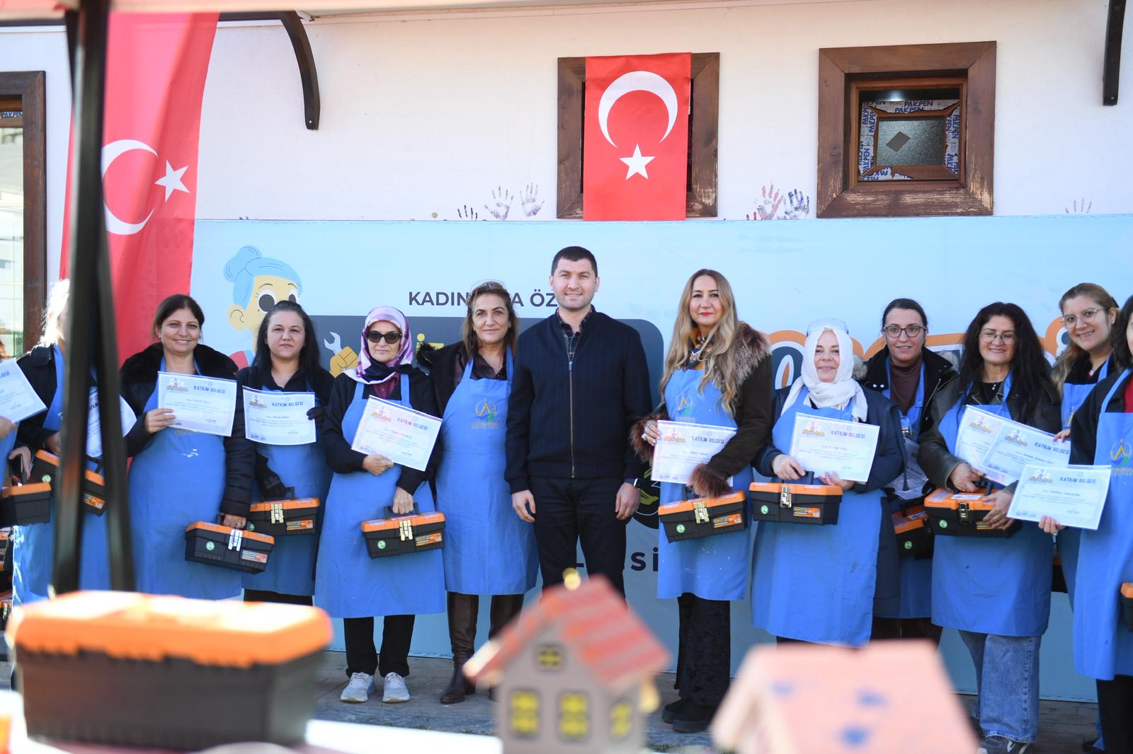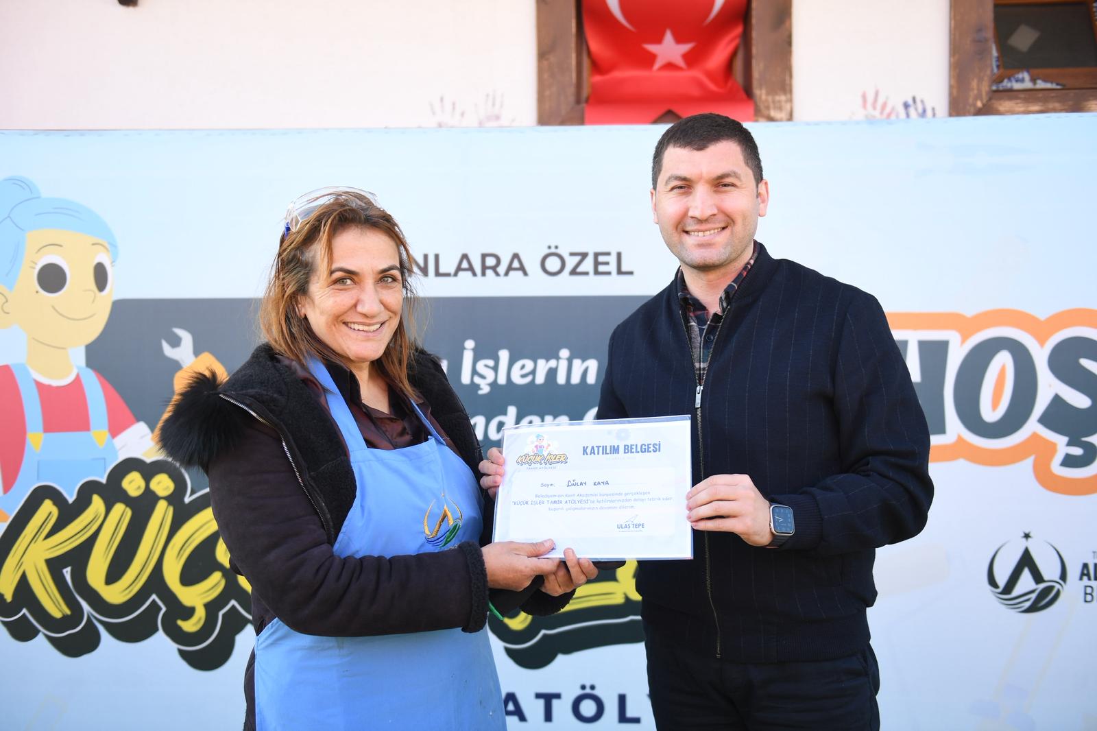 Göknur Bacaksız da, “Bir erkeğe veya bir ustaya gerek kalmadan küçük tamirleri kendimiz yapabiliyoruz. Örneğin evde bulaşık makinesi bozulmuştu. Burada aldığım eğitimlerle su tesisatındaki sorunu kendi başıma çözdüm. Böyle bir hizmette bulunduğu için teşekkür ediyorum belediye başkanımıza” ifadelerinde bulundu.