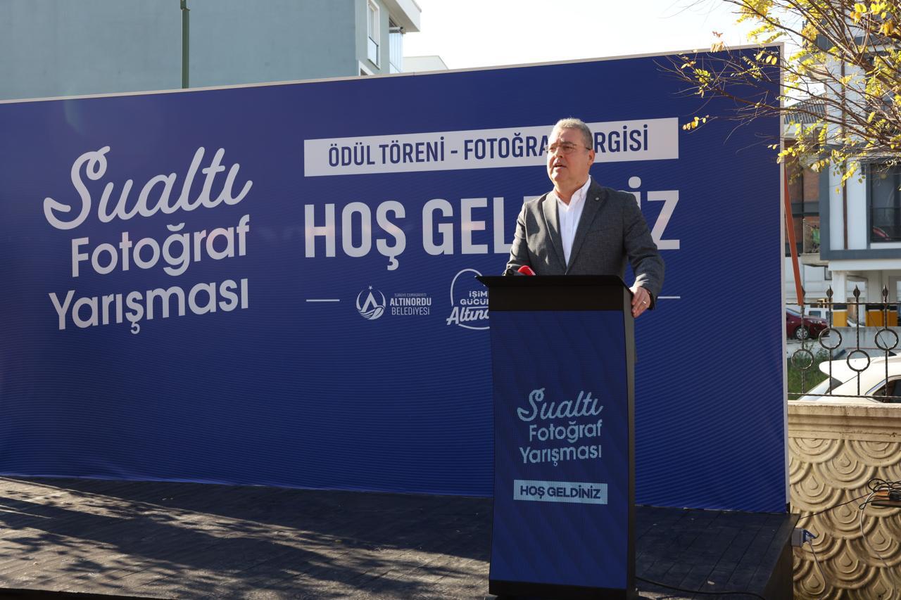 Ödül töreninin açılış konuşmasını gerçekleştiren Belediye Başkan Yardımcısı Bahadır Baş, “Su Altı Fotoğraf Yarışması, bizim yaklaşık olarak 4-5 aydır planladığımız bir çalışmaydı. Gerçekten çok güzel fotoğraflar objektiflere yansımış. Bu yarışma bir etkinlik olarak yapılıp, unutulmasını istediğimiz bir yarışma değil. Bu yarışmanın geleneksel hale gelerek her yıl bambaşka bir boyutta devam etmesini istediğimiz bir yarışma. Bizim bu yarışmadaki ana hedefimiz; Karadeniz’imizin, Ordu’muzun su altındaki güzelliklerini paylaşmak. Bu etkinliği Yason Burnu gibi farklı alanlarda yapabilirdik ancak bu yıl 1’incisi olması nedeniyle şehrimizin ilk kuruluş yerlerinden biri olan Kotyora’da yapılması gerektiğine inandık ve bu nedenle Güzelyalı Mahallesi’ni seçtik. Böylelikle Karadeniz’in florasını, çok az zaman da kendisini gösteren Karadeniz’in güzelliğini aslında burada yakalamış olduk. O yüzden ben emeği geçenlere, katkıda bulunan herkese teşekkür ediyorum” dedi.
