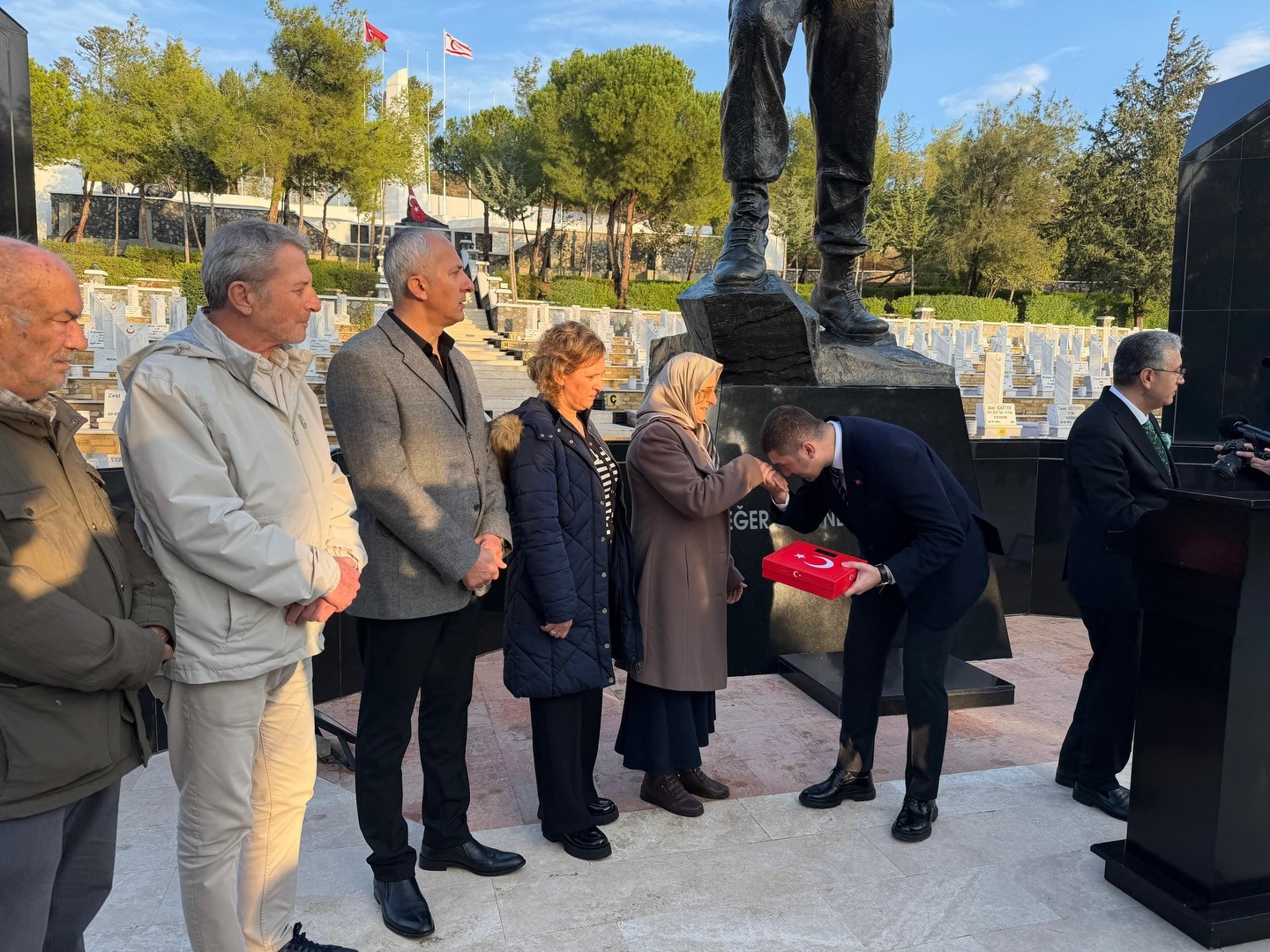 Başkan Tepe, ziyaretler sırasında Kıbrıs Barış Harekâtı’nda şehit olan Muhabere Astsubay Başçavuş Bayram Gümüş’ün eşi Muteber Gümüş, kızı Serpil Gümüş Tıkış ve oğlu Ali Gümüş’e ay-yıldızlı Türk bayrağı takdim ederek ailenin acısını bir kez daha paylaştı.