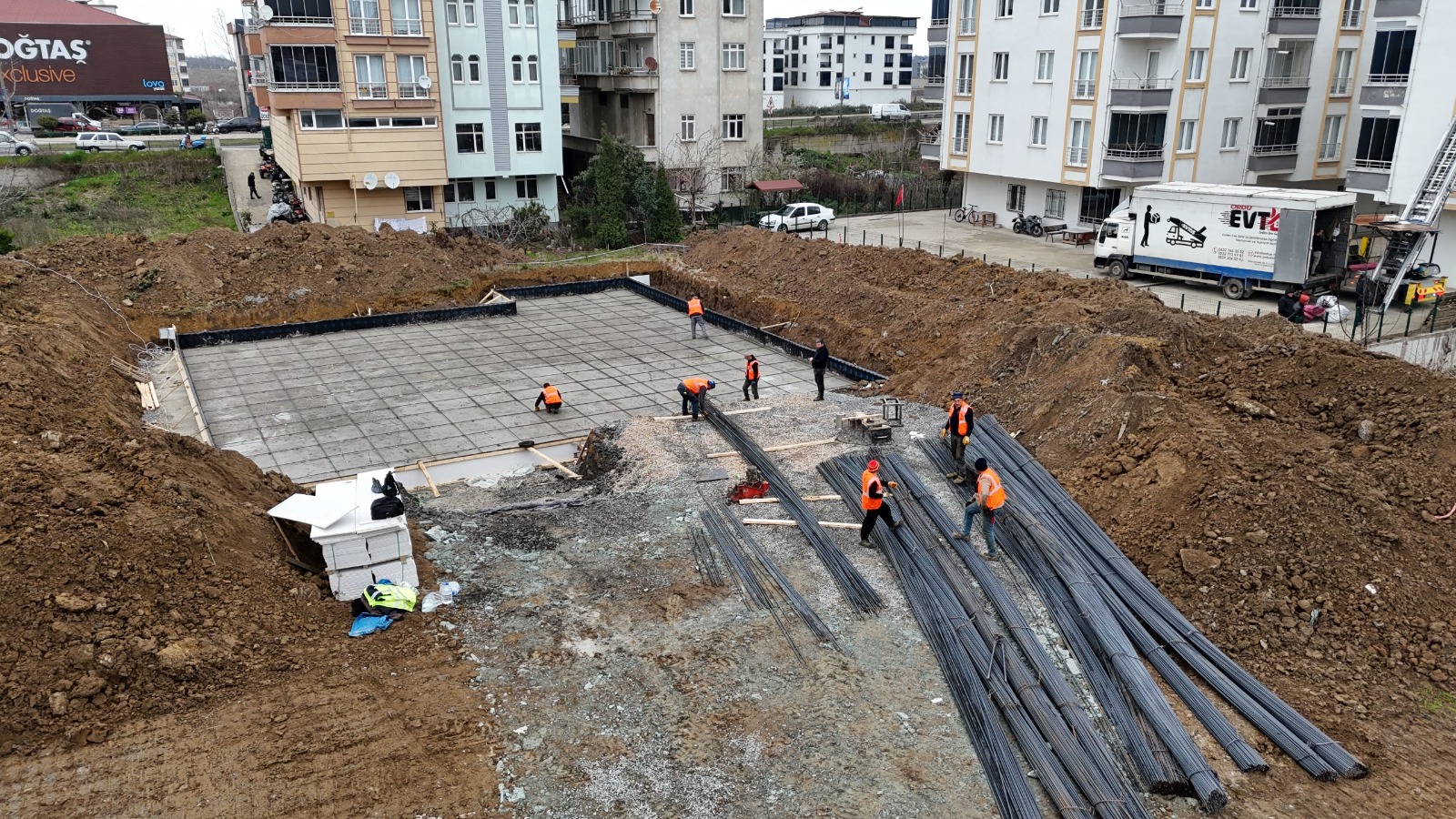 Altınordu Belediyesi’nin Karapınar Mahallesi Organize Sanayi Bölgesi (OSB) yanında yapımını sürdürdüğü Rıfat-Şükran Çabuk Kreş ve Gündüz Bakımevi inşaatı hızla yükseliyor. Çalışan anneleri destekleyerek kadın istihdamının önünü açacak kreş ve gündüz bakımevi bölgedeki önemli bir ihtiyaca cevap verecek. Hummalı çalışmaların yürütüldüğü şantiye sahasında temel kazı çalışmalarının ardından, temel betonunun dökümünü gerçekleştirildi. Perde kalıp çalışmalarının devam ettiği inşaatın bu yıl içerisinde tamamlanması hedefleniyor. Çalışan annelerin çocuklarını güvenle emanet edebilecekleri modern bir eğitim ve bakım merkezi olarak planlanan proje, tamamlandığında hem ailelerin yükünü hafifletecek hem de kadınların iş hayatına katılımını kolaylaştıracak.
