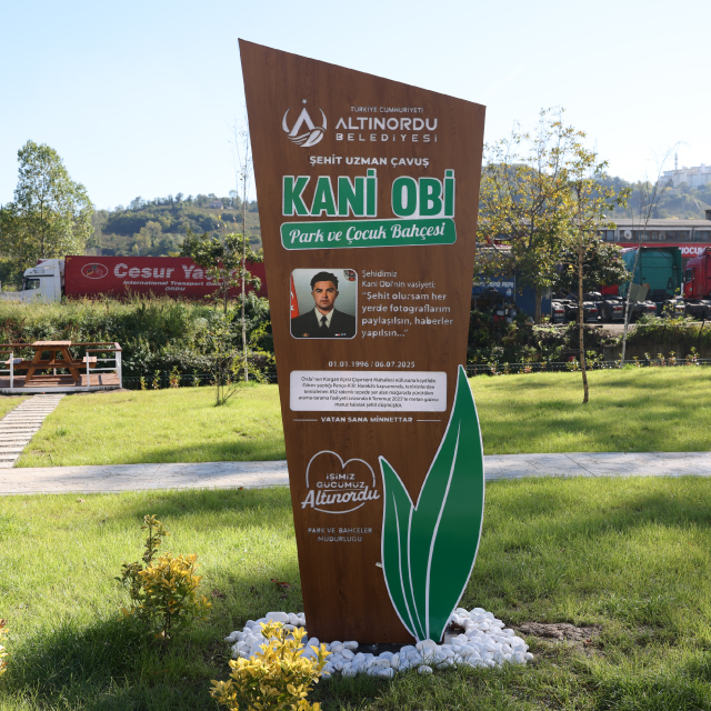 Altınordu Belediyesi tarafından 3 bin 280 metrekarelik alanda yapımı tamamlanan yeni park, düzenlenen törenle hizmete açıldı. Temmuz ayında Pençe-Kilit Harekât Bölgesinde şehit düşen Piyade Uzman Çavuş Kani Obi’nin adının verildiği parkın açılışına, şehidin ailesi ve çok sayıda davetli katıldı. Yeni yaşam alanı; geniş yeşil alanları, çocuk oyun grupları, spor ve dinlenme bölümleriyle hem çocukların güvenle vakit geçirebileceği hem de ailelerin keyifle kullanabileceği bir ortam sunuyor.